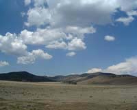 of the high desert. Blue skies, in the afternoon some clouds. Pass two ranches,